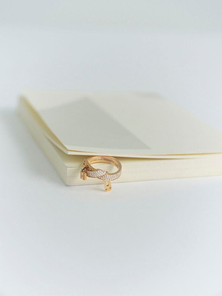 メゾンの名品“ケリー”の留め具をモチーフにしたリングは、しなやかに結ばれたフォルムが印象的。その結び目は絆のように心をつなぎ、身に着ける人に静かな強さを与える。