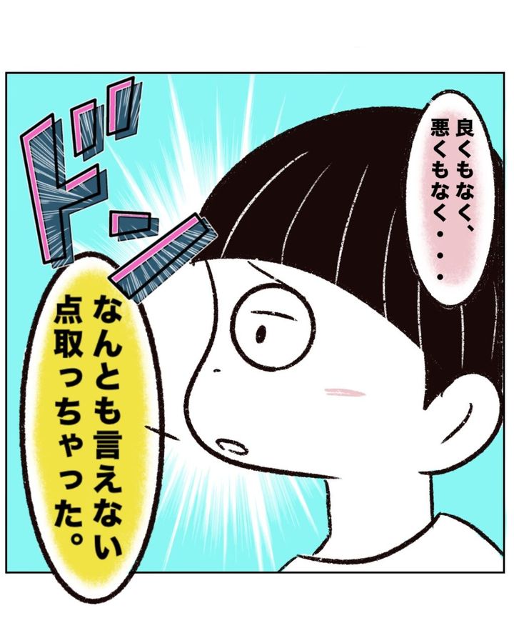アキくんは悩ましげな顔をして、「良くもなく、悪くもなく・・・なんとも言えない点取っちゃった」と言いました。