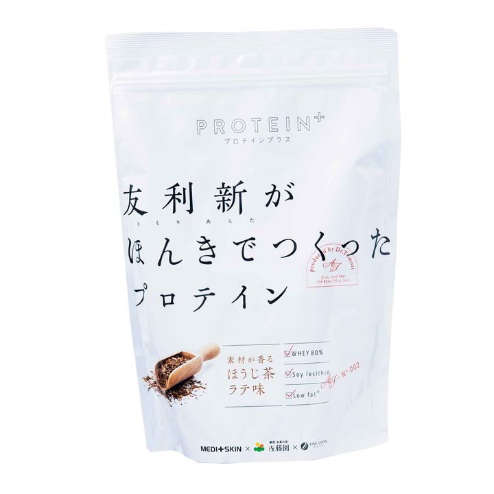 筋トレが好きで、もともとたんぱく質は摂っていましたが、ムチパン肌に近づくためにも意識して補給するように。友利先生のほんきでつくったプロテインがすごく飲みやすい!大豆と動物由来のプロテインがバランスよく入っているのがいいですね。抹茶やミルクティー、ほうじ茶ラテなどフレーバーがカフェっぽくて、お茶する感覚で飲めます。