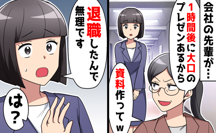 退職日に先輩から突然の指示「1時間後にプレゼンあるから資料作って」思わず返したひと言