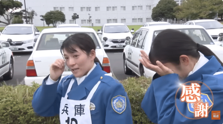 続いては塩津さん。繊細な運転技術を披露し、コーンが並ぶ狭いコースも難なくクリア。ノーミスで走りきりました。競技を終え、ホッとした表情の2人。県警のメンバーに「すばらしい!」「すごいわ!」と温かい拍手で迎えられ、思わず涙。「お疲れ!」「ありがとう!」と抱き合い、互いの健闘を称え合います。