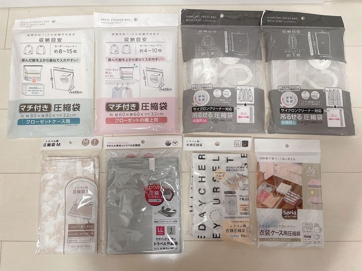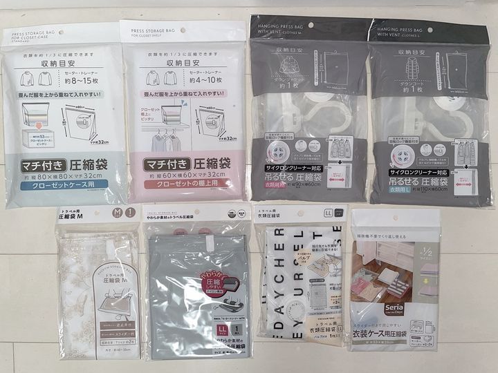 3. 【セリア】圧縮袋が進化しすぎ!旅行用から「吊るせる」「マチ付き」まで全8種を徹底レビュー
