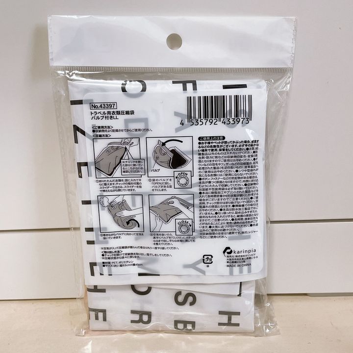 • 商品名:トラベル用衣類圧縮袋LLバルブ付
