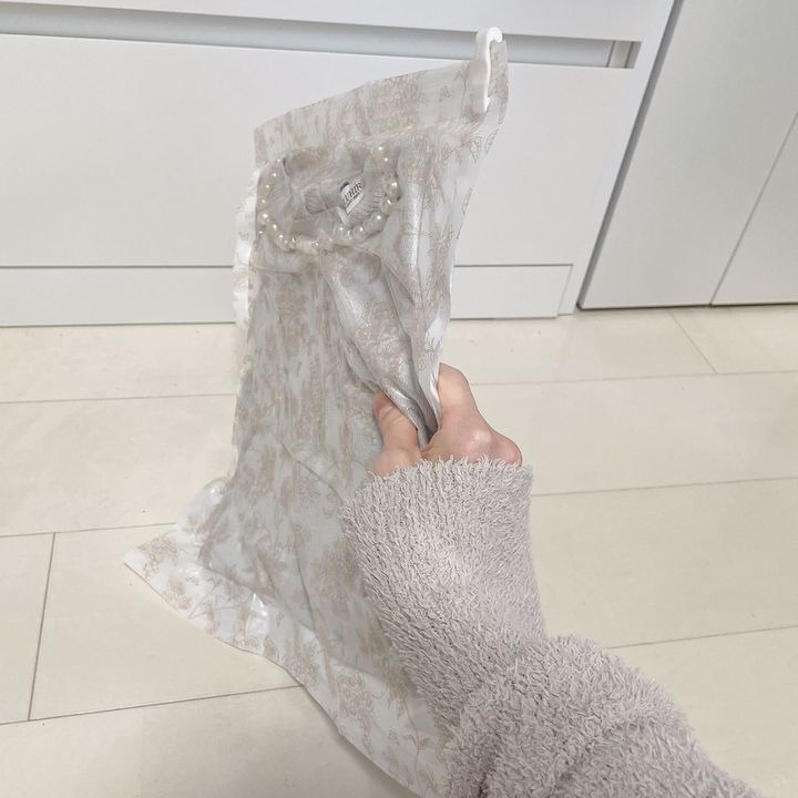 柄が入っていて、とにかく見た目が可愛い!片面が柄入りの目隠し仕様になっているので、下着やインナーなど、開けた時にパッと見られたくないものを入れるのに最適です。