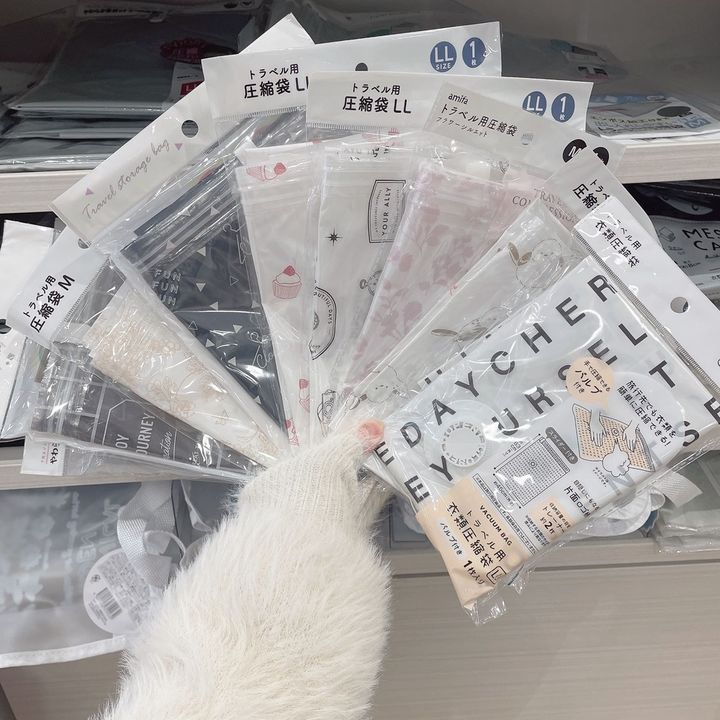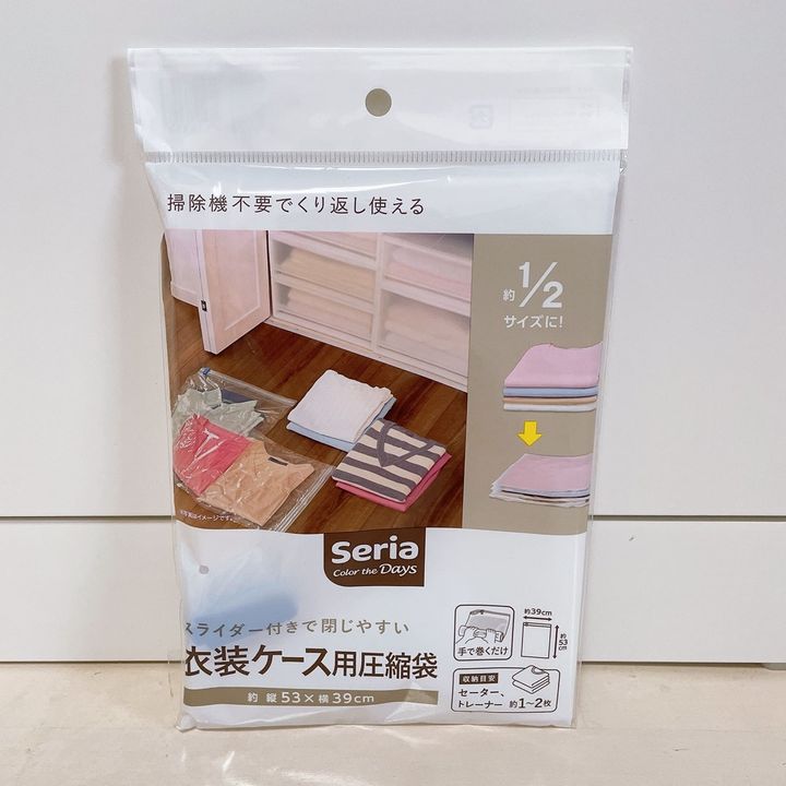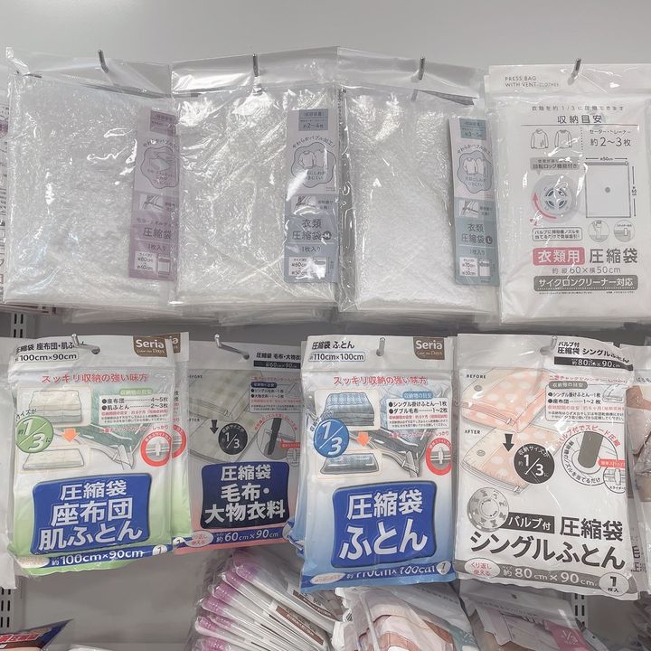 そんな時に私たちの強い味方になってくれるのが100円ショップ。中でも「セリアの圧縮袋」は、ただ空気を抜くだけでなく、用途に合わせてデザイン性や機能性が驚くほど進化しているんです!