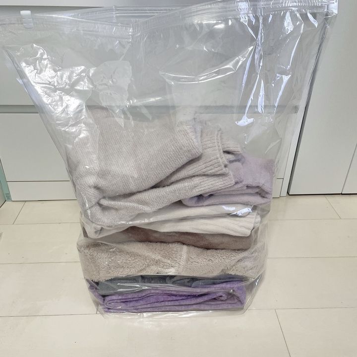 また、一度にたくさん入る分、「この1枚だけ取り出したい」という時は全部空気が入ってしまうので少し面倒かも。衣替えで「来シーズンまで絶対に出さない服」をまとめて圧縮するのが賢い使い方です。