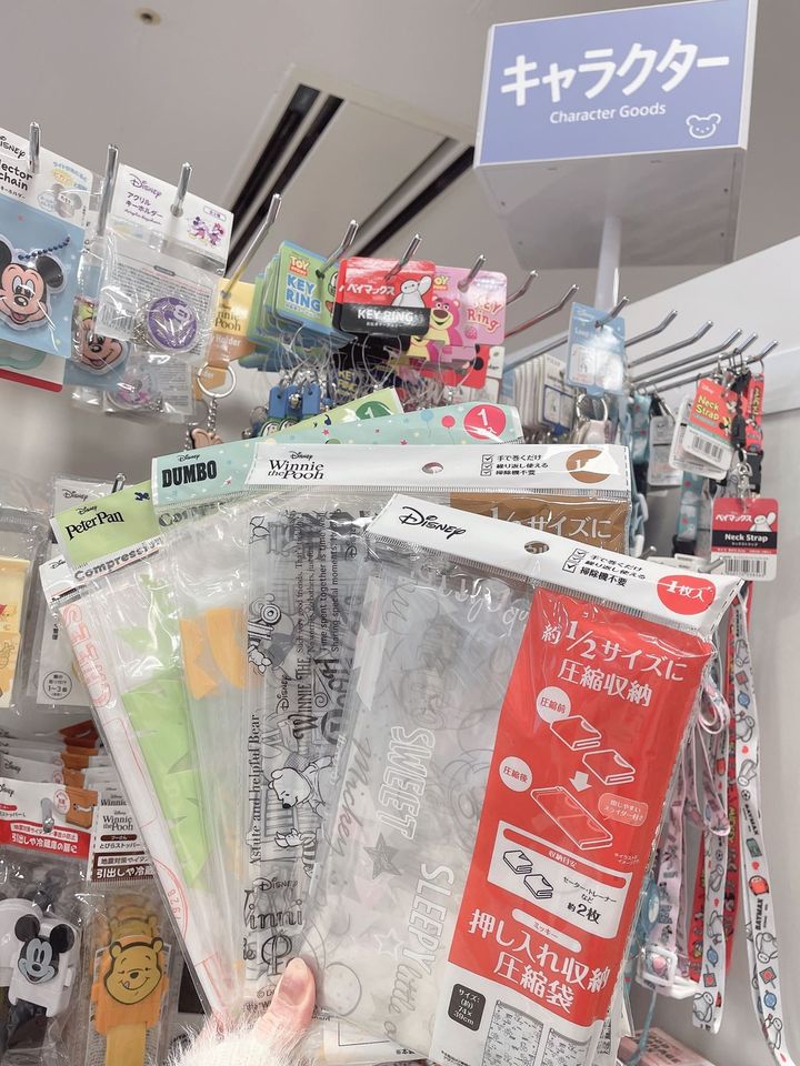 意外な穴場がここ!ミッキーやプーさん、ダンボなど、ディズニーデザインの可愛い圧縮袋を発見。面倒なパッキングも可愛い柄ならテンションが上がりますよね。