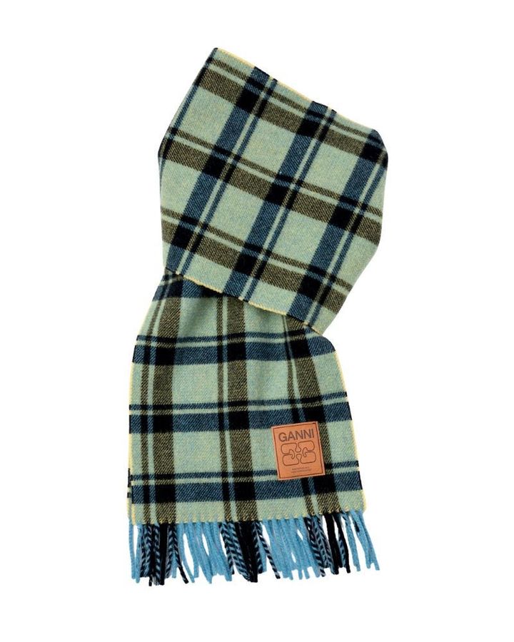 表と裏でピッチが異なるブロックチェックだから、ひと巻きで個性的なスタイリングが完成。