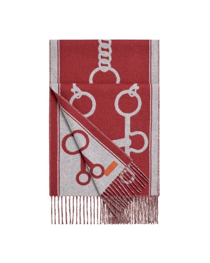 馬具のパーツをグラフィカルなパターンで表現。カシミヤ100%の肌触りにうっとり。
