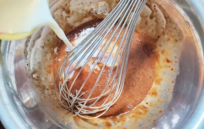 『ネスレ ミロ』を混ぜた卵液に、食パンを浸して焼くというレシピ。