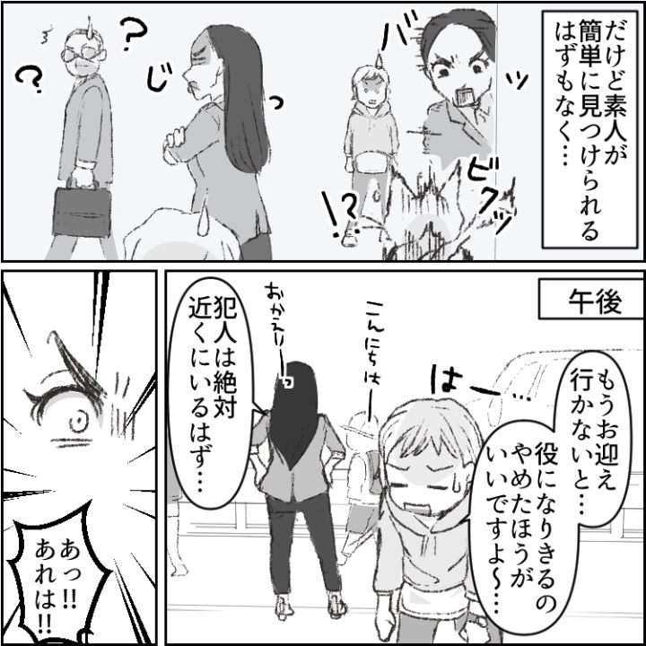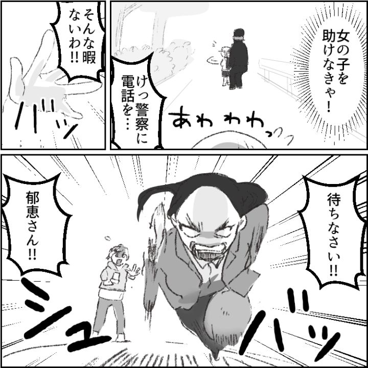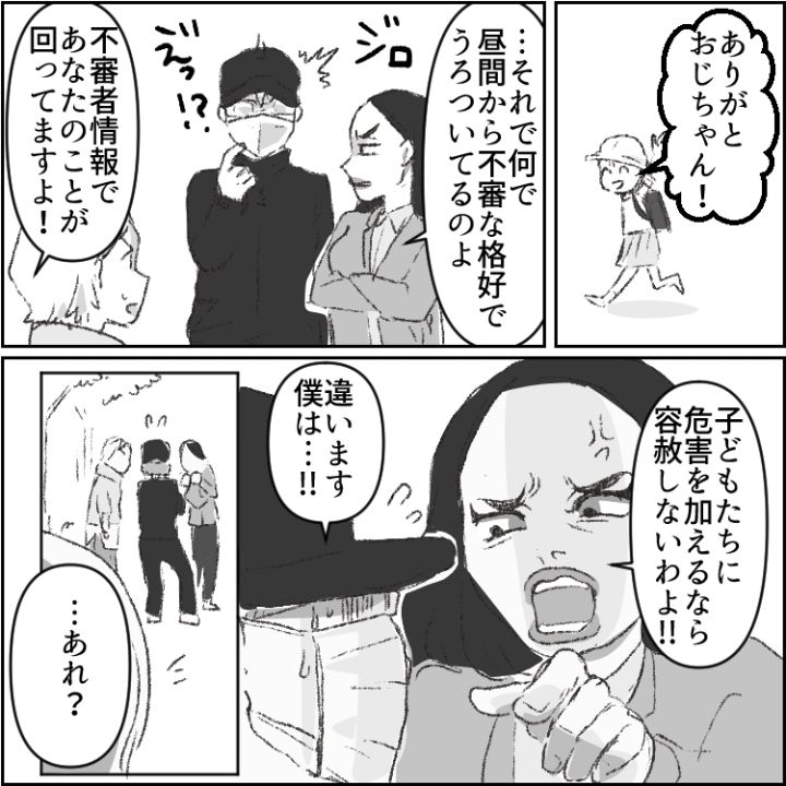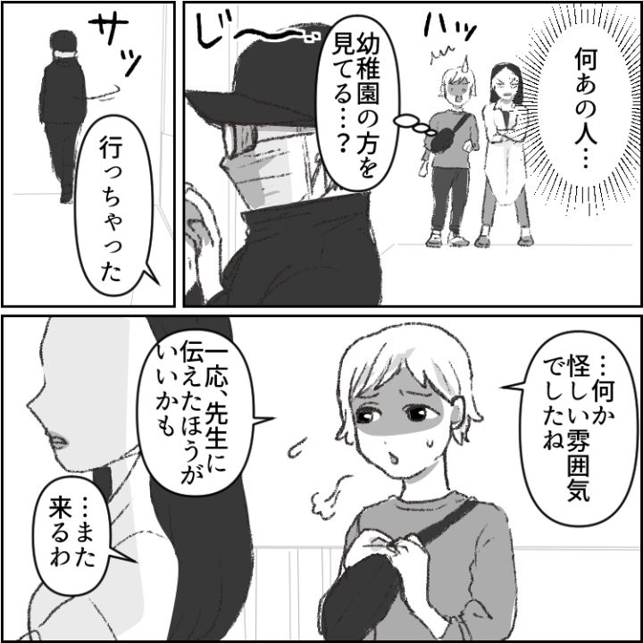 そんなある日、幼稚園を覗く不審な男性を発見する郁恵さん。翌日、町内では不審者情報が出回ることに。