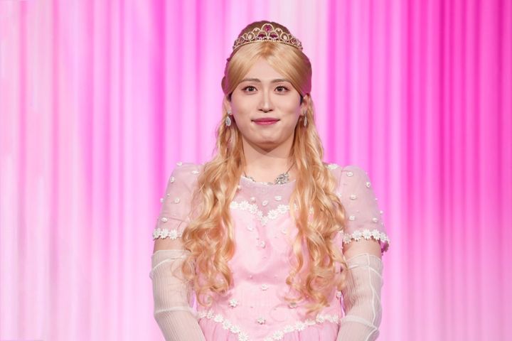 続いて、グランプリ受賞者として相⽅である池田直人さんがステージに呼び込まれると、ヒロインメイクのキャラクター「エリザベート・姫子」のさながらの華やかなピンクのドレス姿で登場。新色のカラコンに合わせた、トレンドアイメイクもとってもすてきです。