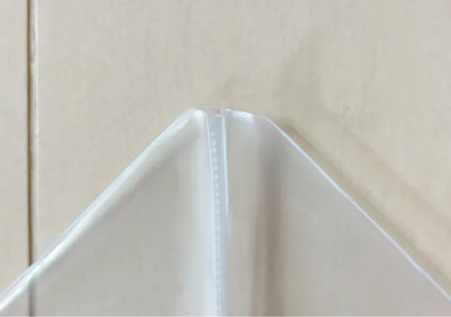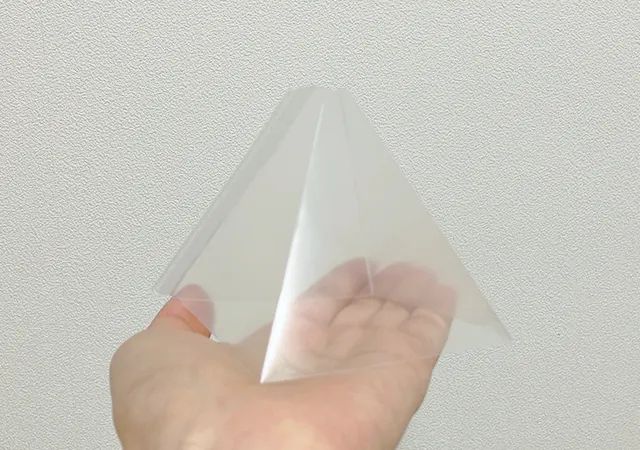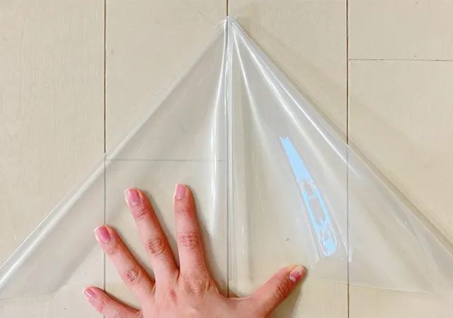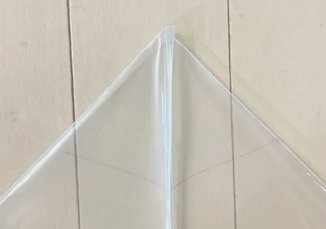 まず、クリアファイルを広げて、三角形になるように折ります。