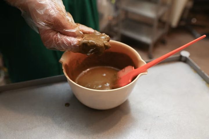 「容器(金属以外)にヘナカラー剤を入れ、ぬるま湯で溶かします。髪から垂れない程度のペースト状にしましょう」(森田さん)