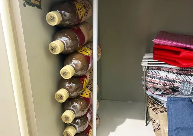 こうすることで、大量のペットボトルでもスペースを取ることなく、すっきりと収納ができます。