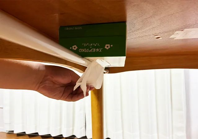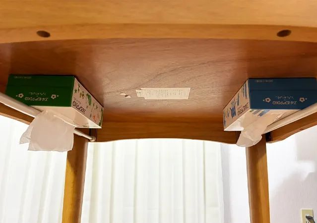 ティッシュを使いたい時は、テーブル下に手を伸ばせばすぐに取り出せますよ。