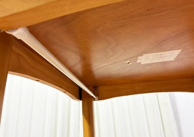 テーブル下のスペースにつっぱり棒を取りつける