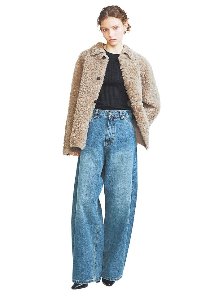 アタリを拾わない余裕をもたせたフォルムで脚線を包むことで、細さを際立たせられるスタイルアップデニム。フィット感のある高めの腰位置からゆるやかに広がる、ギャップのある曲線シルエットにより、穿くだけでくびれたウエスト、すらっとしたレッグラインを強調できる。
