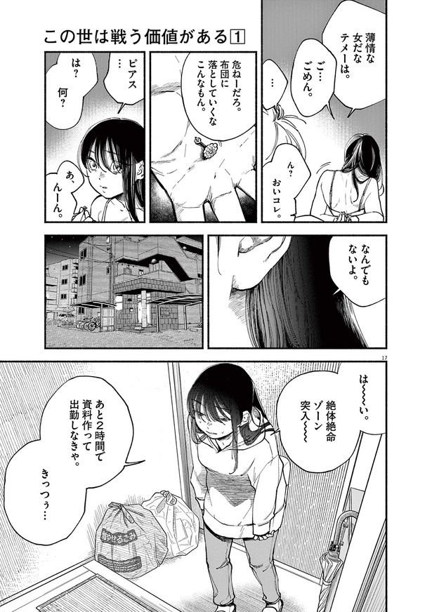 「私は死ぬときに11人の命を救う」常に疲労MAXのOL・伊東紀理は、上司には仕事を押し付けられ、恋人には金と身体をせびられる掃き溜めのような日々を送っていた。ついに死ぬための遺品整理を始めた紀理だったが、郵便物の中から“あるモノ”を発見して……。社会の波に翻弄された女性の一大決心から始まるヒューマンドラマ『この世は戦う価値がある』をお楽しみください!