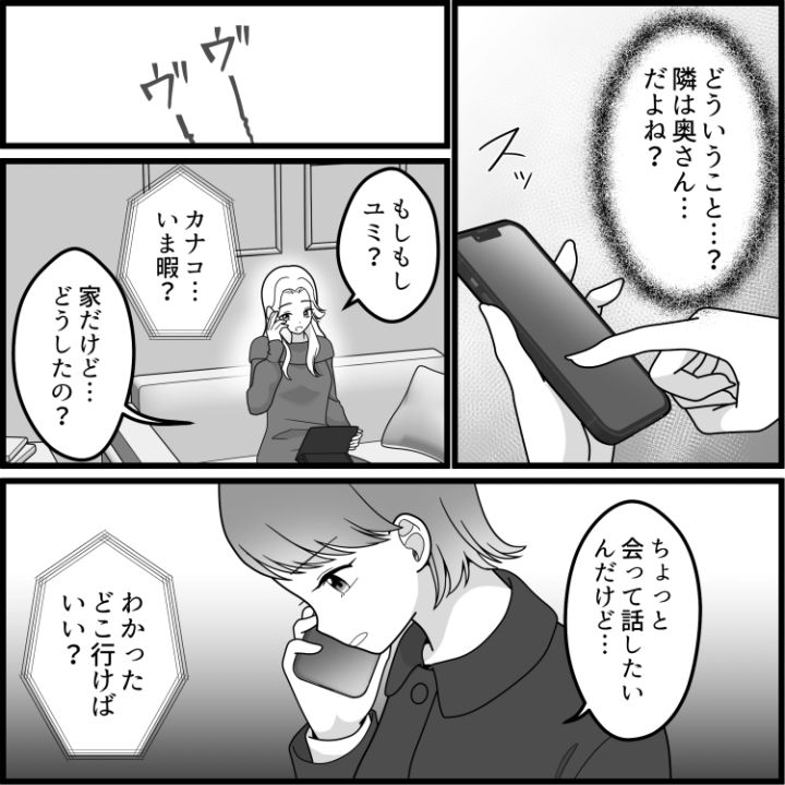 ユミは高校の友人・カナコと頻繁に飲みに行く仲だ。ある日、2人で飲んでいると、カナコから会社の先輩に片想いしていると打ち明けられる。次のデートで告白することを決めている彼女を、応援するユミ。後日話を聞くと、どうやら無事に付き合えたようで、とってもうれしそうな様子のカナコ。しかし、実はカナコの彼氏にはとんでもない秘密が隠されていた!?