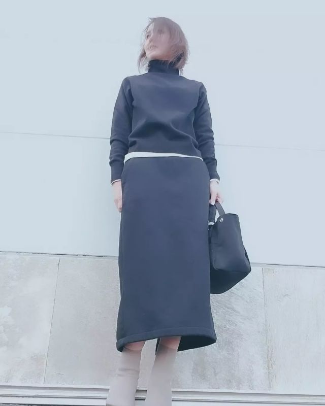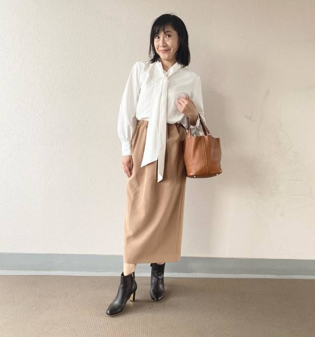 【50代×冬のロングスカートコーデ】タイトなスカートですっきりと