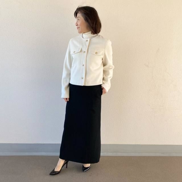 【50代×冬のロングスカートコーデ】ショート丈アウターでバランスよく