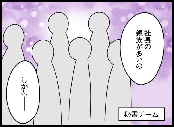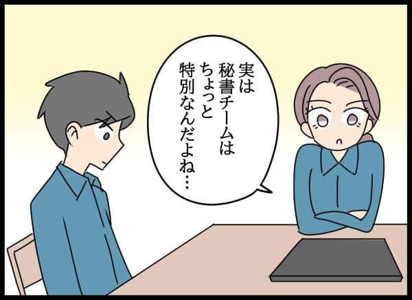 一方小野は杉本に秘書課について「特殊なところ」だと話します。秘書課のメンバーは、社長の親族で固められている、というのです。