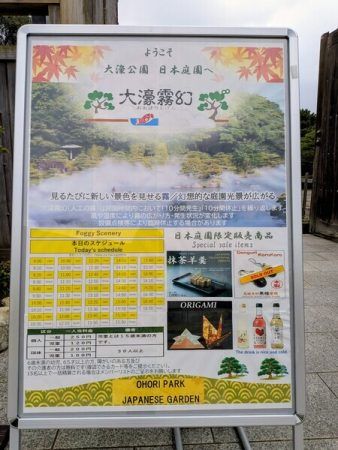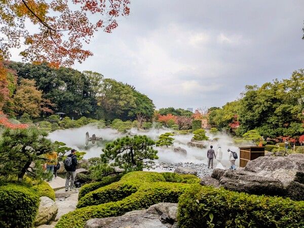 大濠霧幻と銘打った、人工の霧が発生するイベントも行われています。一時間に三回、幻想的な日本庭園が現れます。