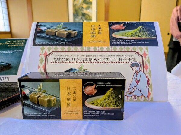 くろがね堅パンで有名な㈱スピナが手掛けた八女の抹茶を使った抹茶羊羹は、大濠公園 日本庭園限定パッケージで1000円です。