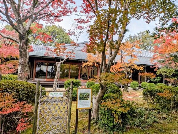 前庭から見た茶会館。紅葉の赤がきれいですねぇ。