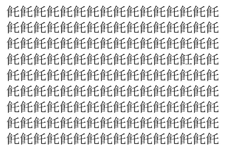 2. 【脳トレ】「飥」の中に紛れて1つ違う文字がある!?あなたは何秒で探し出せるかな??【違う文字を探せ!】