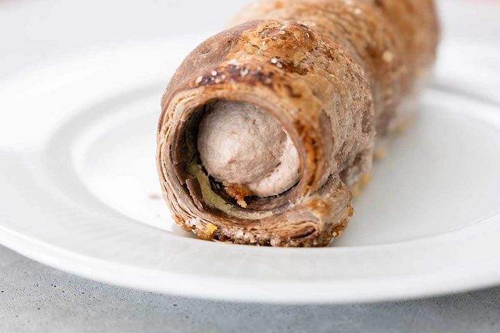 横からチェックすると、パイ生地の中にチョコ風味ホイップが入っていました。
