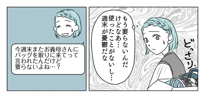 私は義母からもらったバッグを眺めながら、週末にまたバッグを取りに行くのを憂鬱に感じました。