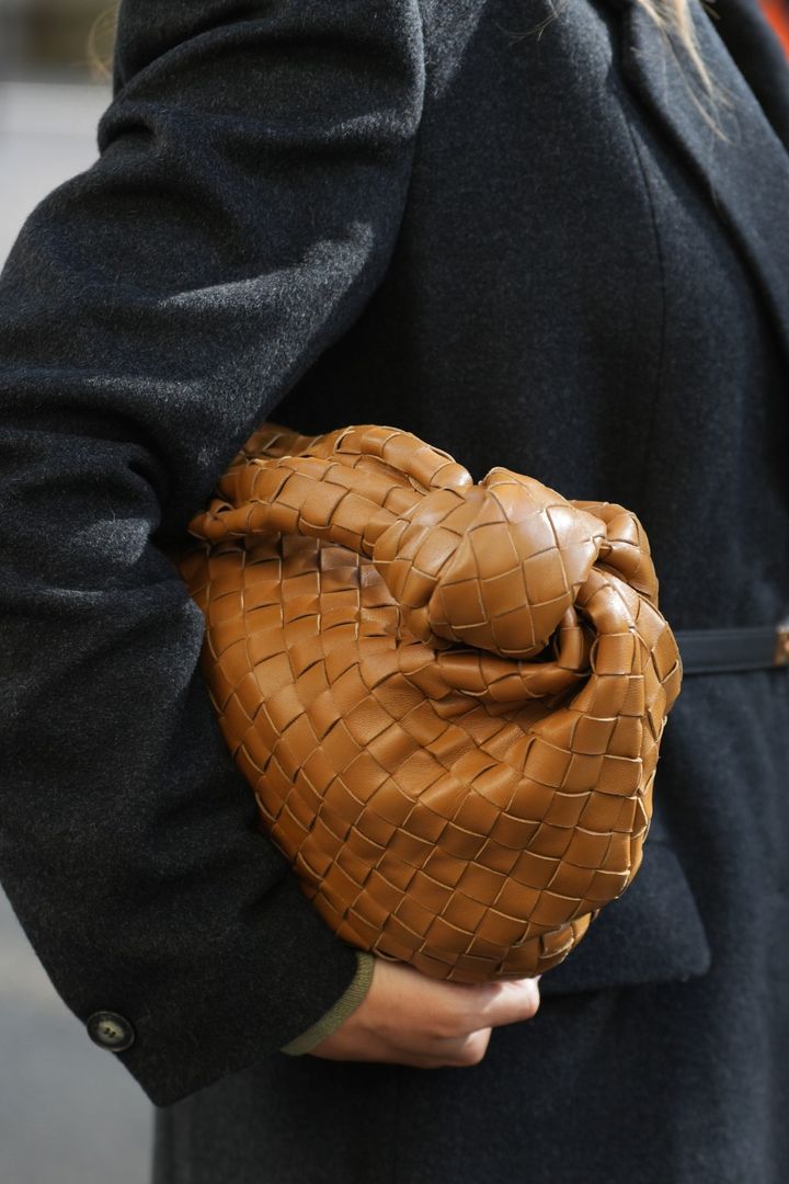 バッグは「ボッテガヴェネタ」の“ジョディ”を愛用。ダークコーデもシックに華やぐキャメルカラーをセレクト。