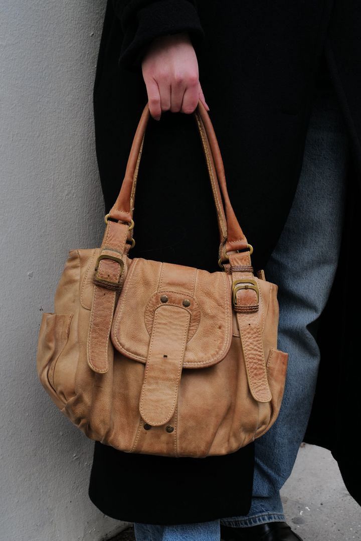 レザーバッグはヴィンテージショップでゲット。くったりとした風合いがパリジェンヌらしいこなれ感を届けてくれる。
