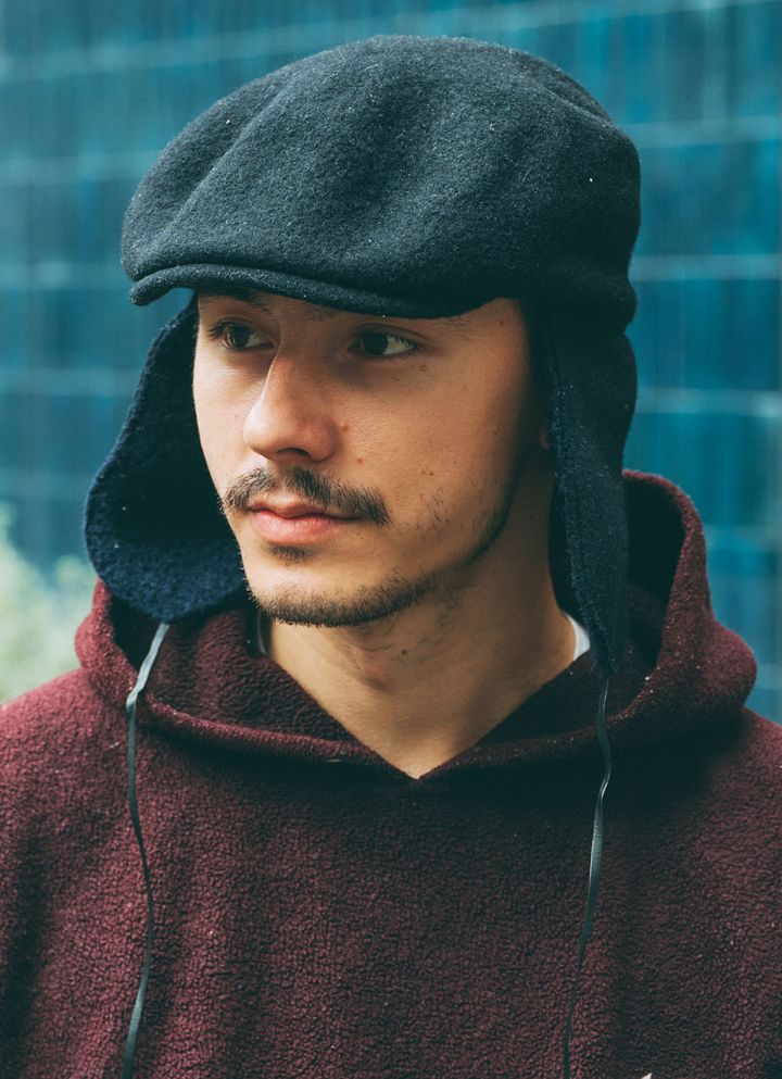 『オーバーライド』のハンチング帽でクラシカルムードを漂わせて。耳当て付きという新鮮なデザインに注目!