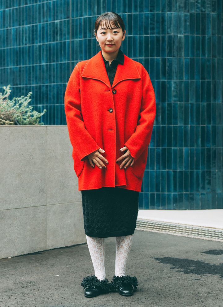 3. ヴィンテージのミディ丈コートがめちゃかわ!赤をシェアしたファミリーコーデ | HugMug
