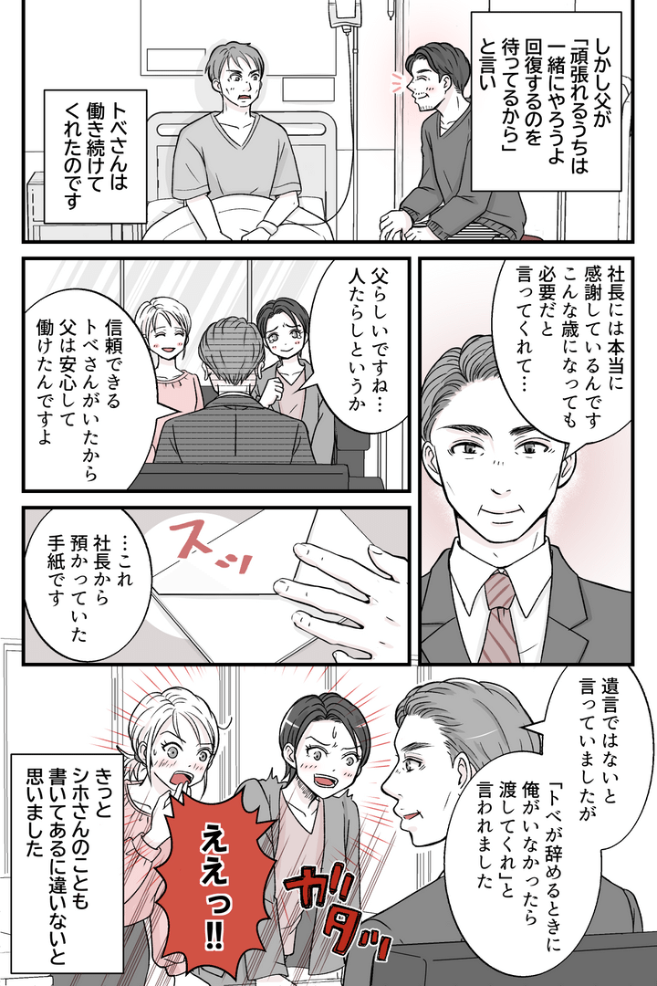 そんな折、父の右腕だったトベさんから「父に託された手紙」があると告げられました。「もし自分がいないときにトベが退職することがあれば渡してくれ」と言われていたそうです。