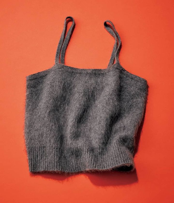 滑らかな肌触り。肩ストラップを中に入れて、ベアトップとしても使えます。ニットキャミソール(エブール/リトルリーグ インク)