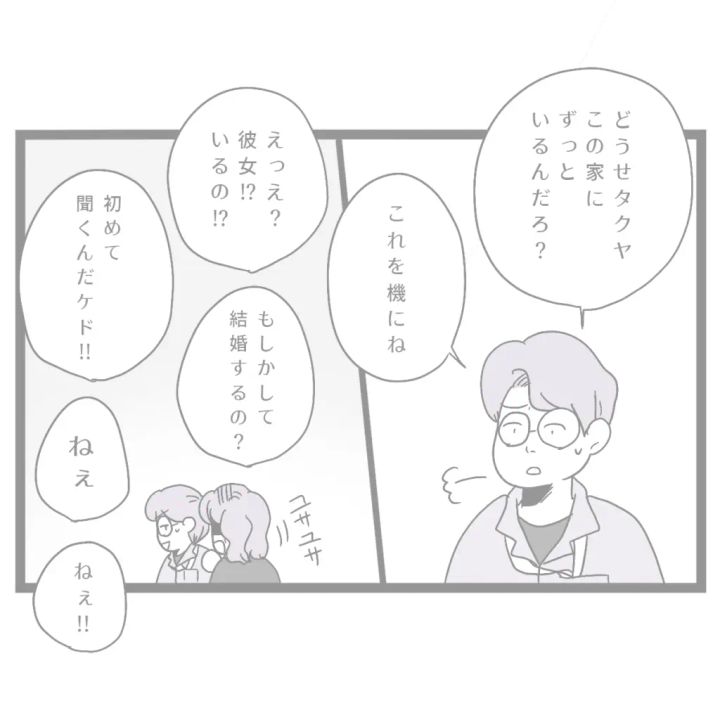 彼女と同棲することにしたという夢にも思わなかったカズヤさんの発表に義母が「もしかして結婚するの?ねぇ!!」と詰め寄るもカズヤさんは何も答えませんでした。