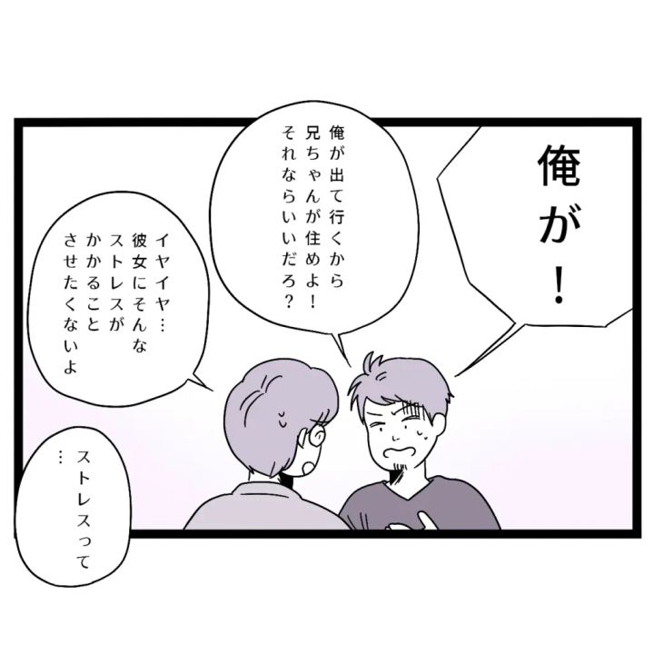 「俺が!俺が出て行くから兄ちゃんが住めよ!それならいいだろ?」タクヤが慌ててそう言うと、「イヤイヤ・・彼女にそんなストレスがかかることさせたくないよ」平然と答えるカズヤさんに、「ストレスって・・」とタクヤが繰り返しました。