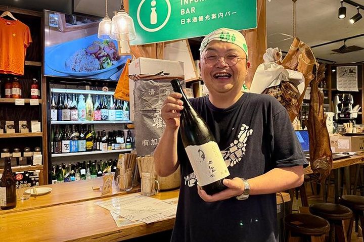 「JR東日本ホテルメッツ新潟」の1階、南口の広場に面したガラス張りの店は一見、洒落たカフェに見える。実際、カフェとしても人気の的なのだが、200種類以上の日本酒を揃えている上、朝7時から23時まで営業という呑兵衛小躍りの場所なのだ。冷蔵庫に並ぶ酒瓶や、酒の名が小さな文字でぎっしり記されたメニューを見れば、喝采のラッパが脳内に響きわたる一方で、幸せすぎてどこから攻めればいいのかと悩むだろう。そんな迷える呑兵衛を救ってくれるのが店の要的存在、くぼケンの愛称で親しまれている「おいしいナビゲーター」の久保田健司さんだ。