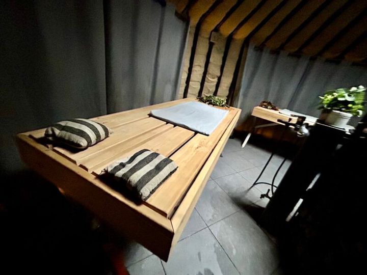 池から上がった後は、すぐに温かいタオルに全身を包まれ、静かで穏やかな時間を過ごしました。静寂の中で、サウナマスターが耳元で鳴らしてくれた楽器の音色が最高の癒やしに。五感すべてから“整い"を感じられる、心身ともに浄化される不思議なひとときでした。