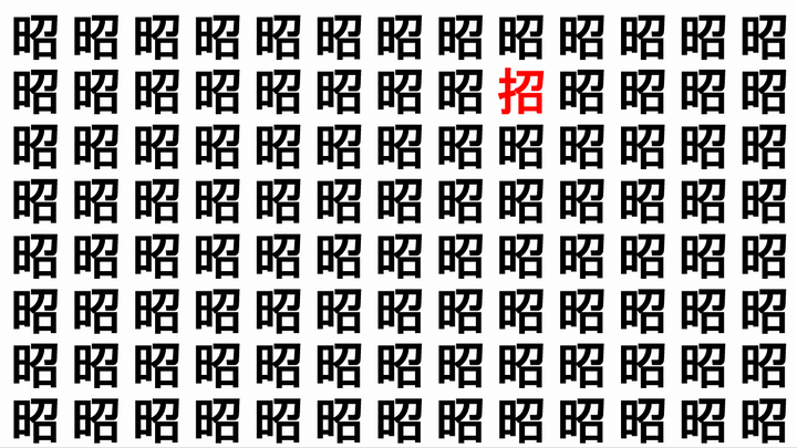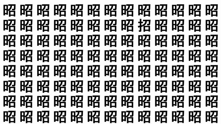 たくさんの「昭」の中に、よく似た別の漢字が1文字だけ隠れています。