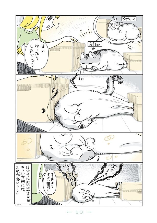 猫は狭い所が好き? 苦しそうな格好で寝る猫のため広いスペースを作ってあげたら…/夜は猫といっしょ5(59)
