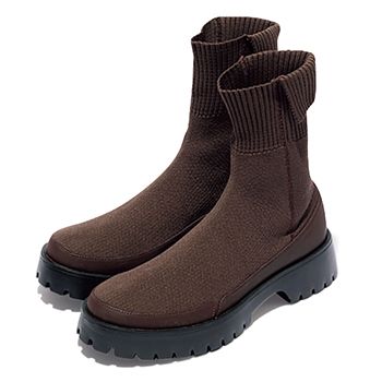 ブーツ(4.5)/emmi(エミ ニュウマン新宿店) きゅうくつ感なく足首が引き締まるのはニットならでは。ソックス感覚で穿けるデザインは、ラクさに加えて足首にぴったりと沿い、つま先から脚にかけてがほっそりと見えるのもうれしいポイント。厚底ソールでスタイルアップもかなう1足。
