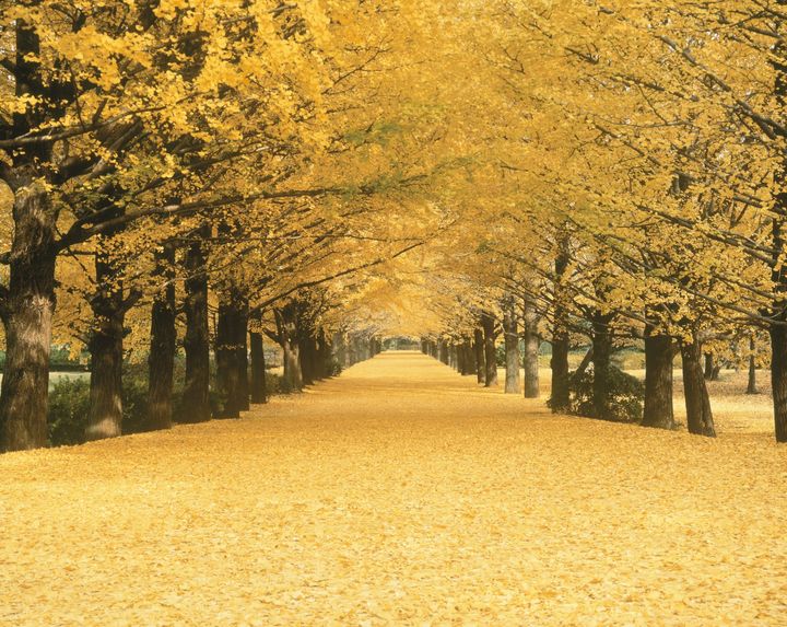 多くの木々が紅葉した後、最後に色づくのが銀杏です。青空によく映える黄色の並木道は冬の風物詩ですが、イチョウ属は2億年前の地上に繁栄し、草食恐竜によって種を拡散させていた裸子植物。恐竜の絶滅とともに消滅し、今日ある種族が唯一の銀杏であることから「生きた化石」と呼ばれています。銀杏は中国の山中にわずかに生き残った銀杏の実が世界中に広まったもので、人の手によって植栽されたもの。日本には十世紀ごろに渡ってきたと考えられ、樹齢千年と推定される巨木があります。