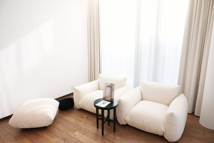 「THE HUNDRED ロンジェビティハウス」の7階には、メンバーシップ会員のみが利用できる特別なVIPルームが設けられています。レコードプレーヤーや大きなソファをはじめ、選び抜かれたインテリアが並ぶ洗練された空間。落ち着いた雰囲気の中で、各階で展開されるアーユルヴェーダの施術や「百薬」の食事を味わえます。親しい仲間や友人を招き、別邸のようにプライベートな時間を過ごすこともできる場所です。