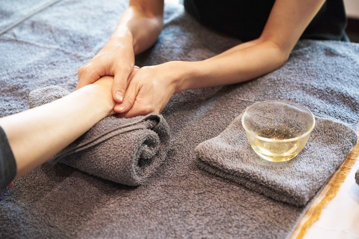 外側から潤いを与える方法として、温めたオイルで体を優しくマッサージするケアがあります。スーパーでも手に入る太白ごま油(セサミオイル)を湯煎で40度程度に温め、乾燥やこわばりが気になる部分に塗り込んでいきます。触れて心地よい温度で続けることで、巡りが促されやすくなるそうです。