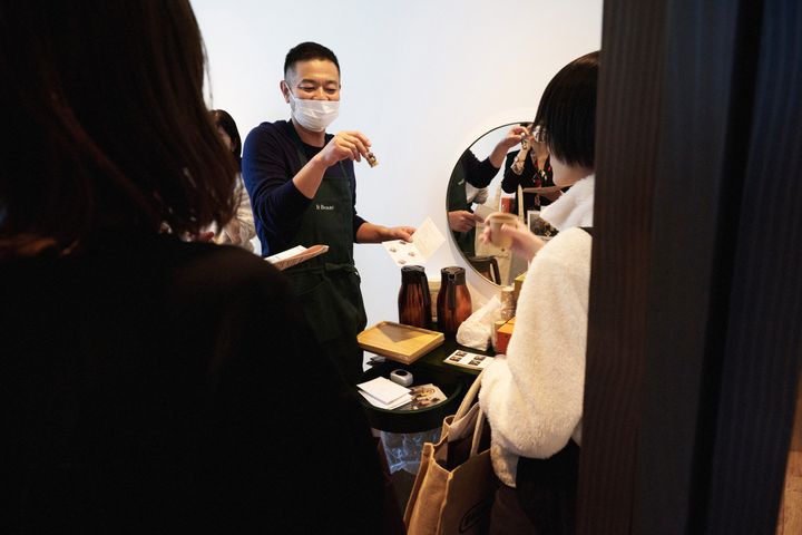 セミナー当日は、ハーブオイルを使った肘から手先のハンドマッサージを実施。「デスクワークで腕に疲労を感じる」「お酒を飲んだ翌日にむくみやすい」など、参加者一人ひとりのライフスタイルや悩みに寄り添いながら、その人に合ったケアの方向性が提案されました。次回の施術予約、プロダクツ購入が10%OFFが適用される特典が提供されました。